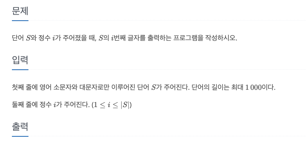 스트링이 주어지고, 이 스트링에 대한 인덱스가 주어지고 이것을 출력하라이다.